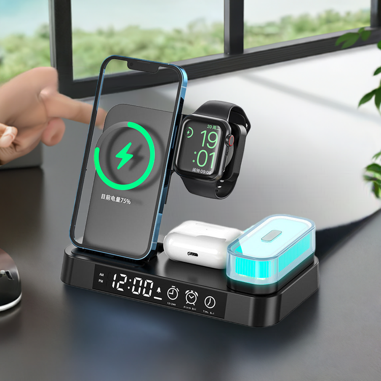 4 In 1 Multifunction Wireless Charger Station With Alarm Clock Display Foldable Wireless Charger Stand With RGB Night Light